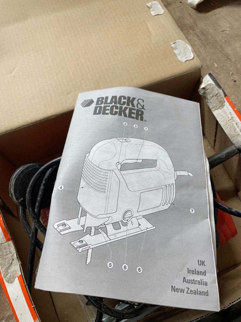 Only used once or twice. Corded mains electric jigsaw. Comes with instructions and a couple of blades. The cardboard box is a bit tatty