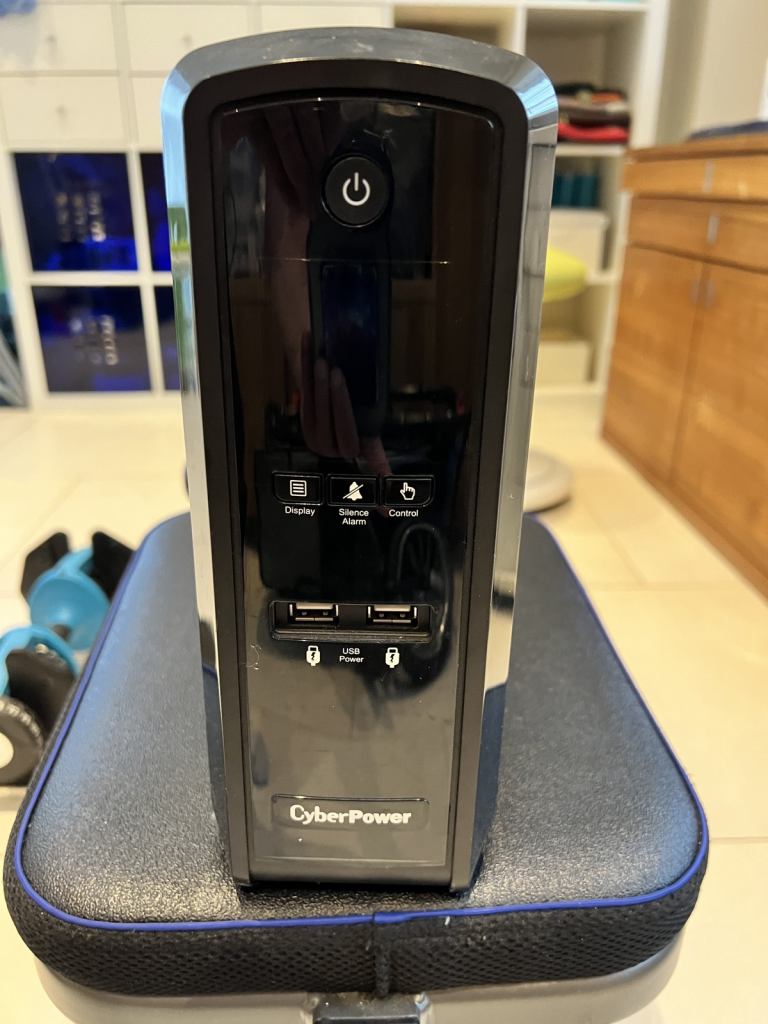 CyberPower BRG1000AVRLCD Intelligent LCD UPS System, 1000VA/600W, 10 Outlets, AVR, Mini-Tower. Perfect condition. Superb for use with PC/Mac etc. new £350.
