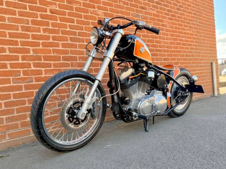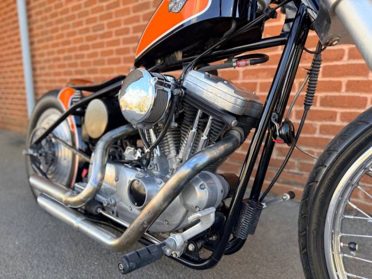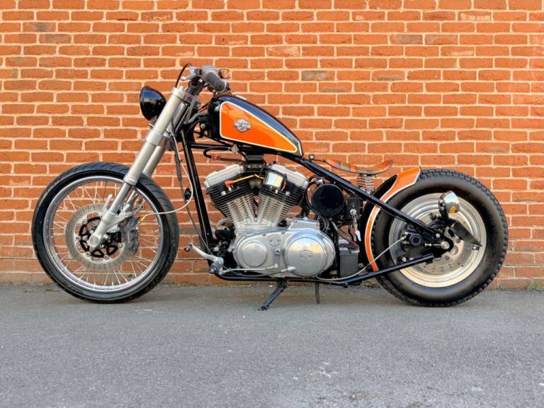 I am pleased to offer this very nicely built custom hardtail bobber. She has just been Serviced and MOTd with a new chain and Harley battery fitted.. Rides extremely well and in my opinion looks fantastic. The perfect bobber look. Finished in black and Harley orange Solid rear wheel with 21" front Inverted forks Spring seat with shortened rear fender. The pictures really do speak for them selves. PX Welcome // Card Payment Accepted // Delivery Options Available STRICTLY APPOINTMENT ONLY We are an independent dealership in Bournemouth on the South Coast, dealing in the weird and wonderful end of the market, Classic, American, rare, limited edition. We like to have a deal, so if you have something of value and we have something you are interested in, then dont hesitate to get in contact. Wether its a car, bike or boat, if the money is right then im sure there is a deal to be had.. PX Welcome // Card Payment Accepted // Delivery Options Available International enquiries welcome. Polite notice: Please refrain from wasting yours and our time with low ball offers..