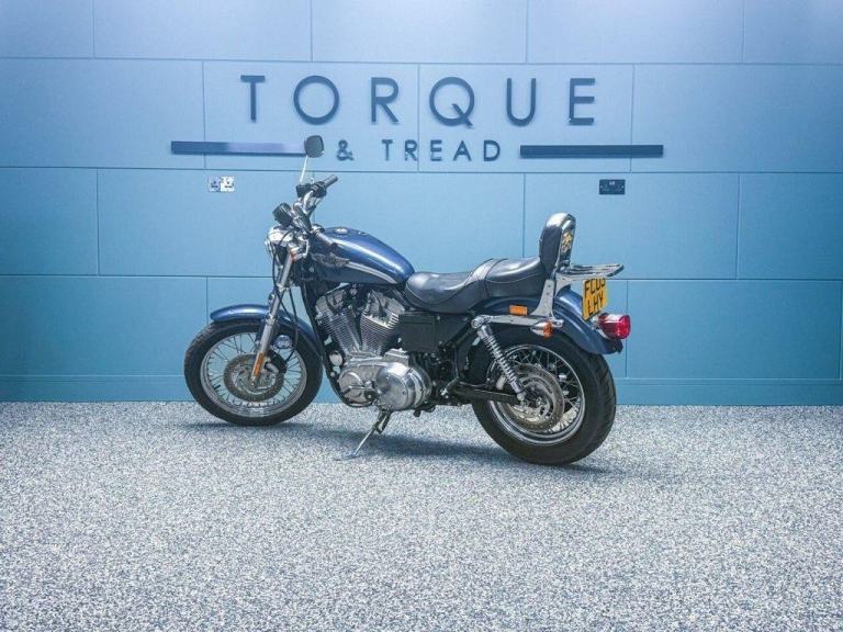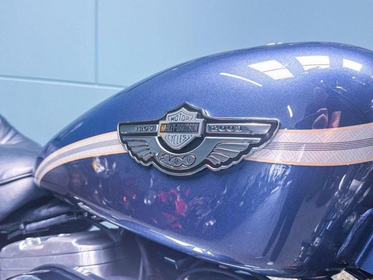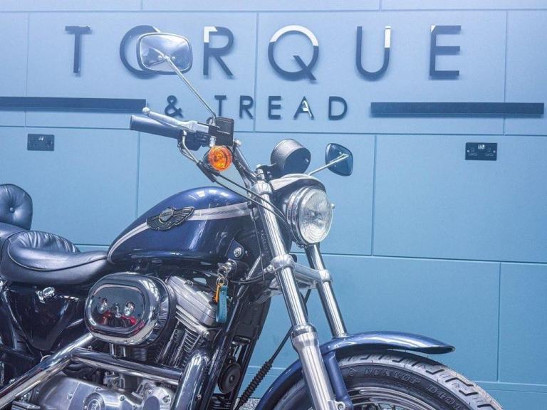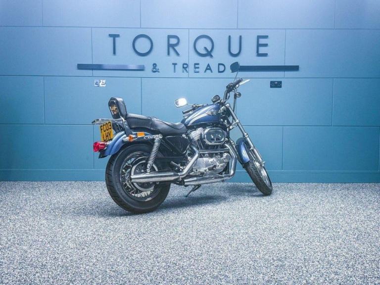 Here#039;s a real gem! This 2003 XLH 883 is the 100th Anniversary model, finished in the gorgeous Anniversary Blue, and it#039;s only covered 303 miles from new but still had 2 services stamped in the book and invoices to go with. It#039;s in beautiful, original condition and has clearly been tucked away and well looked after its whole life.