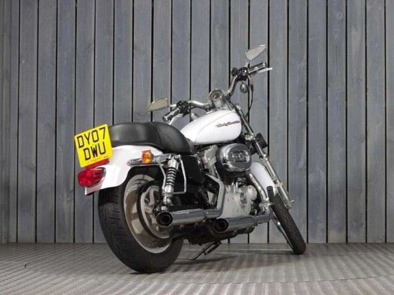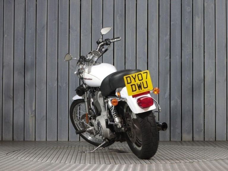 This 2007 WHITE HARLEY-DAVIDSON SPORTSTER motorbike has done 4536 miles and is in superb condition. It's available for collection from our DONINGTON showroom or can be delivered anywhere on the UK Mainland. This bike has 2 previous owners, and comes with 2 Keys.