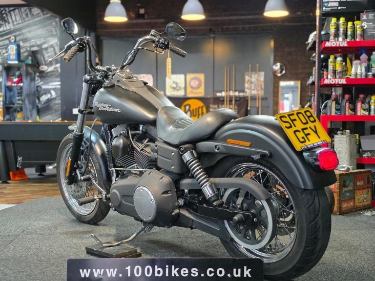 2008 Harley-Davidson Street Bob in Satin Black with 16,000 Mile's. Very High Spec Street Bob. Arlen Ness AirTrax Grips, Thrashin Supply Reservoir Cover, ThunderBike Turn Signals, Smoke Lenses, Hogworx Halo Maker HeadLight, Kuryakyn Low Tail Light, Stage 1, Vance & Hines Fuel Pack, Vance & Hines Short Shots, Arlen Ness Big Sucker Air Cleaner, Recent Avon Chromes fitted.. very good value @ £6,995