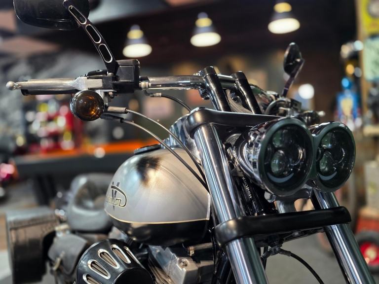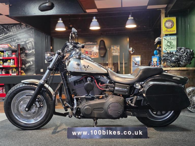 2009/59 Harley-Davidson Fat Bob 1590cc in Custom Livery with 32,000 Mile's. Previously sold and Serviced by Ourselves this Fat Bob comes in a Unique Custom Livery. Many Extra's including Vance & Hines Exhausts, Edge Cut Air Cleaner & Mirrors , Avon Grips, Leather Panniers & Side Bag, Forward Control's, Crash Bars, Smoked Lenses, LED HeadLight etc.. £6,995