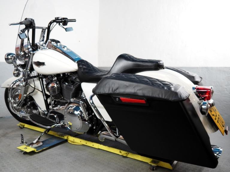 A true Icon the Harley Road King is just so timeless cool ,and in this mildly custom stage 1 with loads of extras it really does make you feel special every time your leg goes over it , and looks stunning too ,the bike has some nice extras done just 19k miles , the condition of this bike is lovely and the extras just add to the mix, the stage 1 makes this an awesome ride and the condition makes this a great bike to love ride and cherish for future years. Ideal for those of us not built like Arnie it is a quite a low bike and not at all intimidating making it a much easier bike for those shorter in the leg