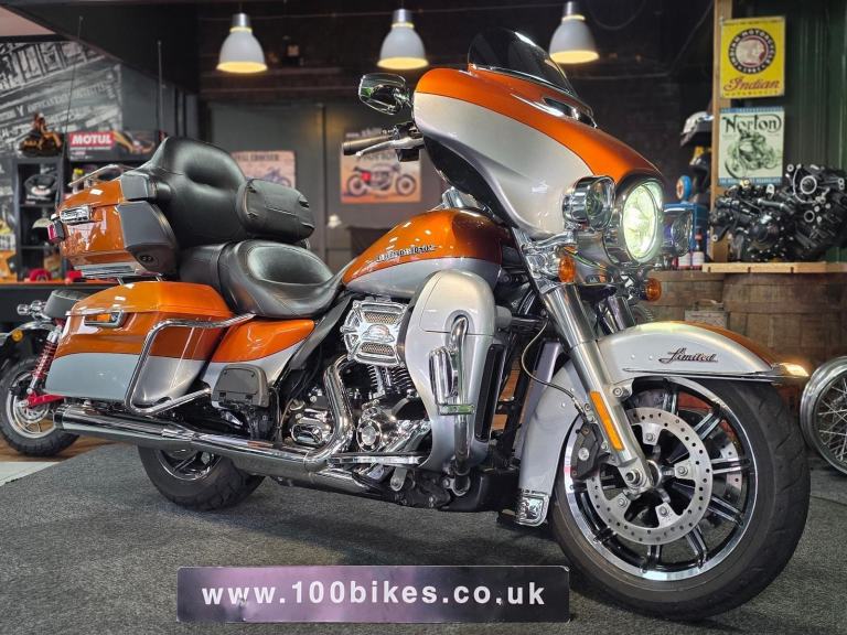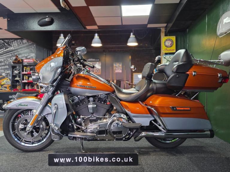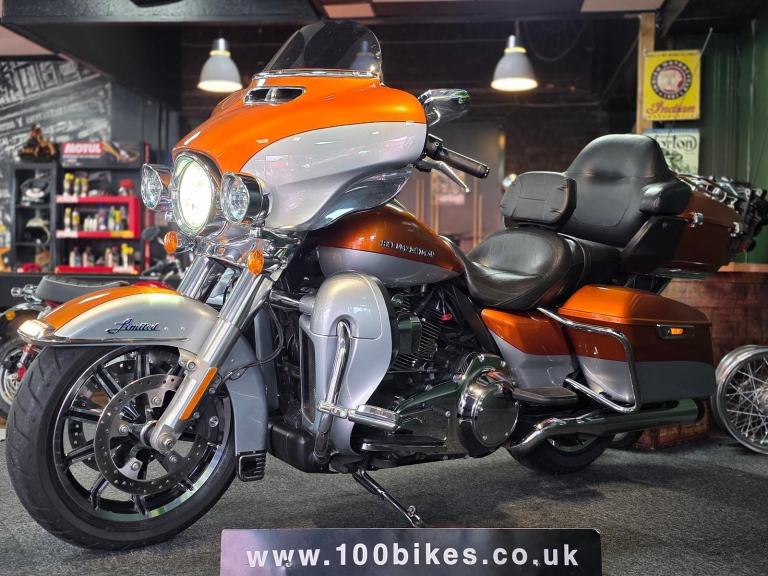 2014 Harley-Davidson FLHTK Ultra Glide Limited 1690cc in Orange/Silver Metallic with 25,000 Mile's. Big spec RhineHart Exhausts, Screamin Eagle Air Cleaner, Tuner Box, Lighting Tour Pack, Rear Pannier Rails, Highway Pegs, Top Box Rack Heated Grips, Rider Back Rest, Tinted Screen, Daymaker HeadLight, Cover.. Service History £9,995