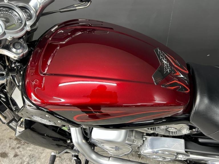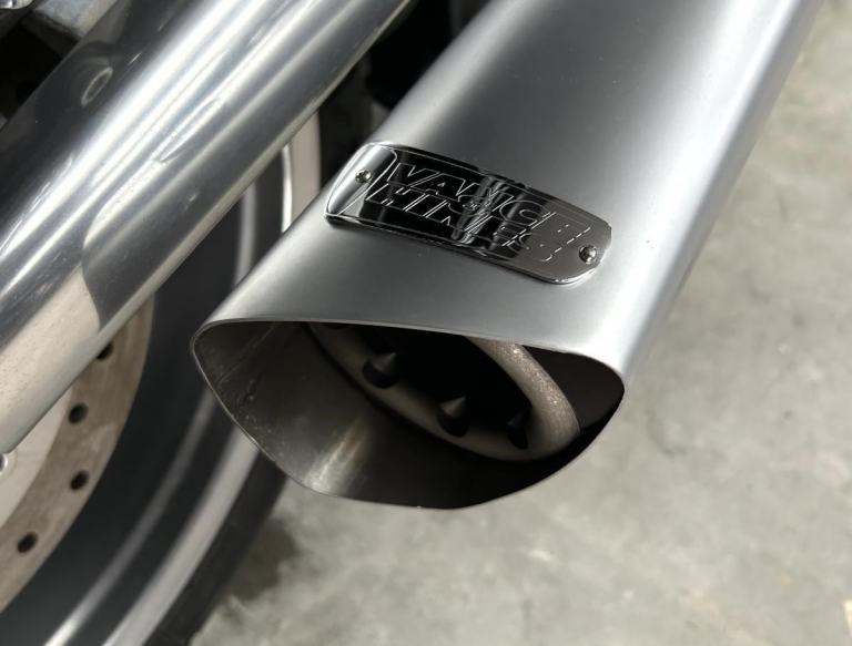 It has a rear sissy bar, rack and cool sounding set of Vance + Hines exhausts.
