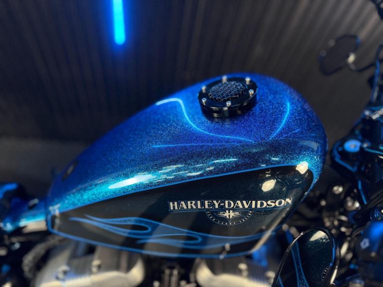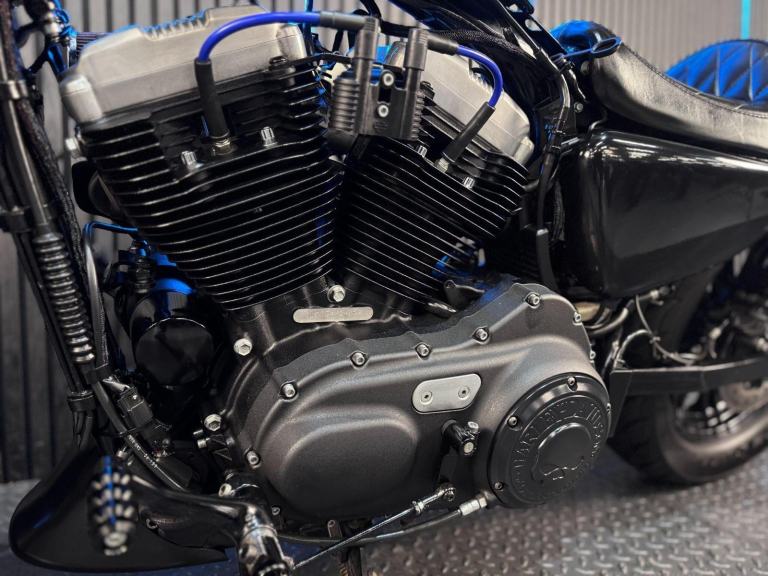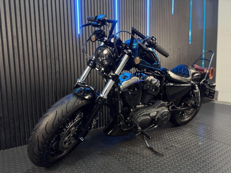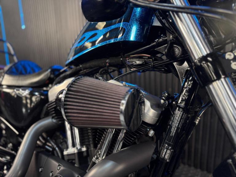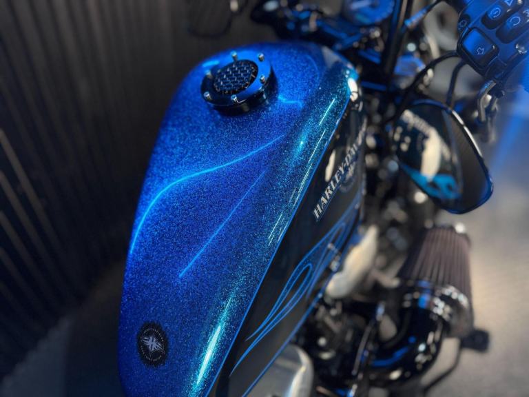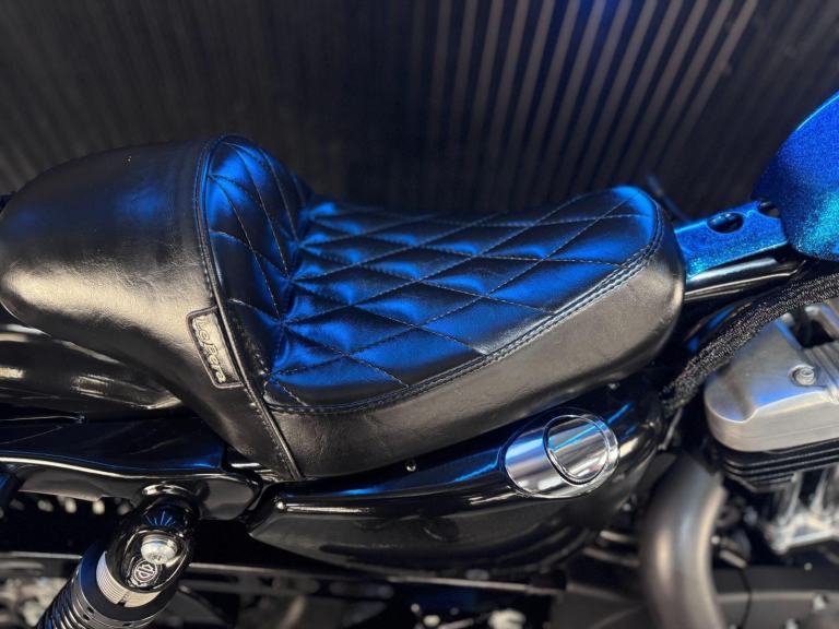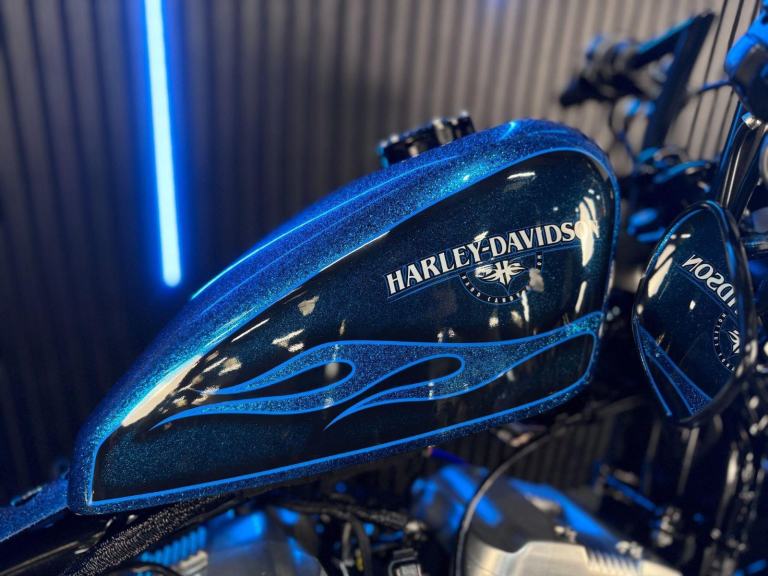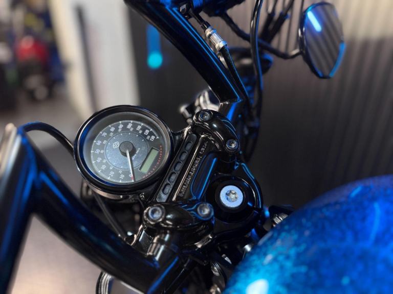 Blue, 24/7 ONLINE PURCHASE AVAILABLE - For sale is this iconic and characterful 2015 Harley-Davidson Forty-Eight, finished in a striking and rare Hard Candy Custom Blue Flake. This machine has covered 17,946 miles and stands out as a true custom heavyweight, featuring the classic ''Peanut'' fuel tank and slammed silhouette that made the XL1200X a modern legend. With its forward controls and low-slung solo seat, this bike offers an authentic, knees-in-the-breeze cruising experience. For your complete peace of mind, it has just received a fresh oil and filter change along with a full general inspection by our technicians. It comes complete with one proximity fob and its original documentation. The Harley-Davidson Forty-Eight is the definitive choice for the rider who wants a bike with undeniable presence and ''old-school'' cool. It is powered by the legendary 1200cc Evolution V-Twin engine, an air-cooled powerhouse famous for its ''thump'' and relentless low-end torque. What sets the Forty-Eight apart is its distinctive styling cues; it features a massive 130mm front tire mounted on a 16-inch spoked wheel, tucked-under ''under-mount'' mirrors for a clean handlebar line, and a chopped rear fender. The 2015 model benefits from the updated braking system that Harley introduced to the Sportster line to provide better modulation and stopping power. Despite its minimalist look, the bike features a ''Keyless'' ignition system via the proximity fob, adding a touch of modern convenience to a vintage-inspired ride. With its chrome-heavy engine accents and blacked-out components, the Forty-Eight remains the definitive choice for the rider seeking a raw, visceral, and timeless piece of Milwaukee iron.***Rest assured, your new bike includes a 3-month warranty (extension options available) and is guaranteed to have at least 6 months remaining on the MOT. Making your purchase simple: Explore our flexible finance plans and benefit from our affordable nationwide delivery service.***, 2 owners, ABS, Electric start, Low Seat height, Stainless Exhaust, Tail Tidy, Please visit our website to buy online, apply for finance or find out about our delivery prices.