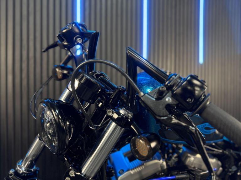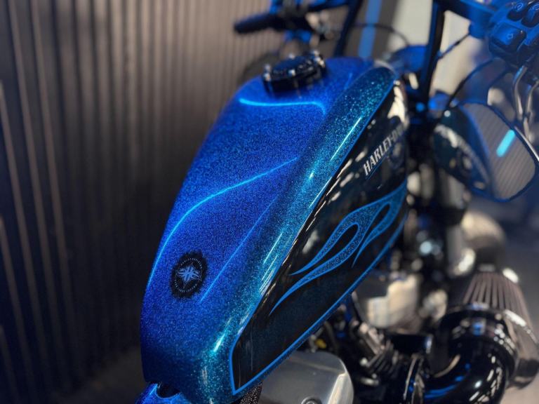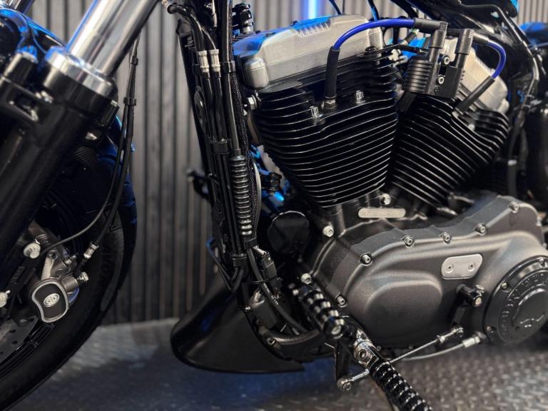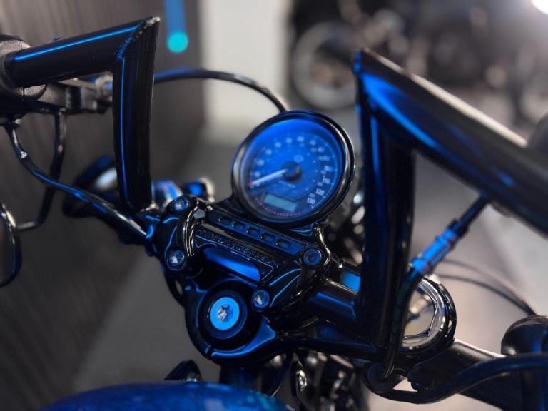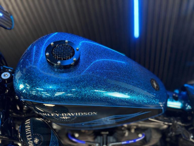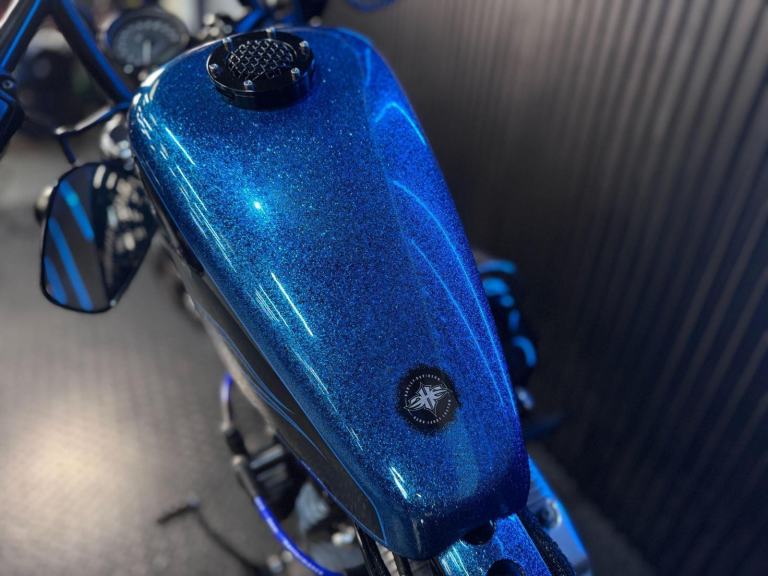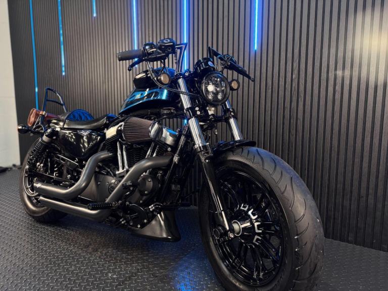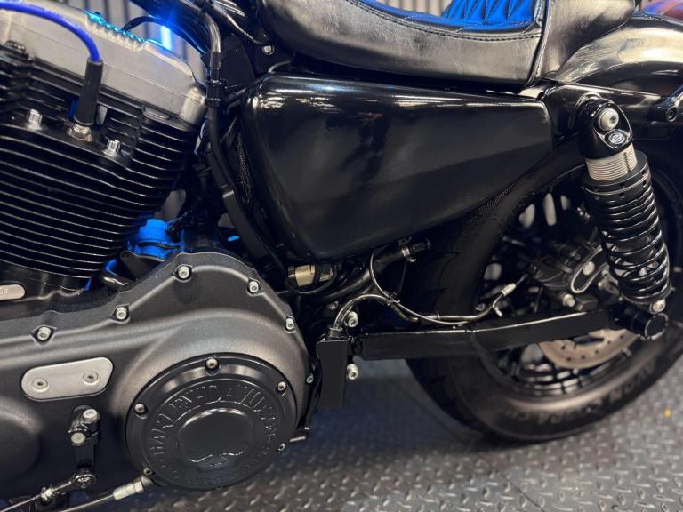 Blue, 24/7 ONLINE PURCHASE AVAILABLE - For sale is this iconic and characterful 2015 Harley-Davidson Forty-Eight, finished in a striking and rare Hard Candy Custom Blue Flake. This machine has covered 17,946 miles and stands out as a true custom heavyweight, featuring the classic ''Peanut'' fuel tank and slammed silhouette that made the XL1200X a modern legend. With its forward controls and low-slung solo seat, this bike offers an authentic, knees-in-the-breeze cruising experience. For your complete peace of mind, it has just received a fresh oil and filter change along with a full general inspection by our technicians. It comes complete with one proximity fob and its original documentation. The Harley-Davidson Forty-Eight is the definitive choice for the rider who wants a bike with undeniable presence and ''old-school'' cool. It is powered by the legendary 1200cc Evolution V-Twin engine, an air-cooled powerhouse famous for its ''thump'' and relentless low-end torque. What sets the Forty-Eight apart is its distinctive styling cues; it features a massive 130mm front tire mounted on a 16-inch spoked wheel, tucked-under ''under-mount'' mirrors for a clean handlebar line, and a chopped rear fender. The 2015 model benefits from the updated braking system that Harley introduced to the Sportster line to provide better modulation and stopping power. Despite its minimalist look, the bike features a ''Keyless'' ignition system via the proximity fob, adding a touch of modern convenience to a vintage-inspired ride. With its chrome-heavy engine accents and blacked-out components, the Forty-Eight remains the definitive choice for the rider seeking a raw, visceral, and timeless piece of Milwaukee iron.***Rest assured, your new bike includes a 3-month warranty (extension options available) and is guaranteed to have at least 6 months remaining on the MOT. Making your purchase simple: Explore our flexible finance plans and benefit from our affordable nationwide delivery service.***, 2 owners, ABS, Electric start, Low Seat height, Stainless Exhaust, Tail Tidy, Please visit our website to buy online, apply for finance or find out about our delivery prices.