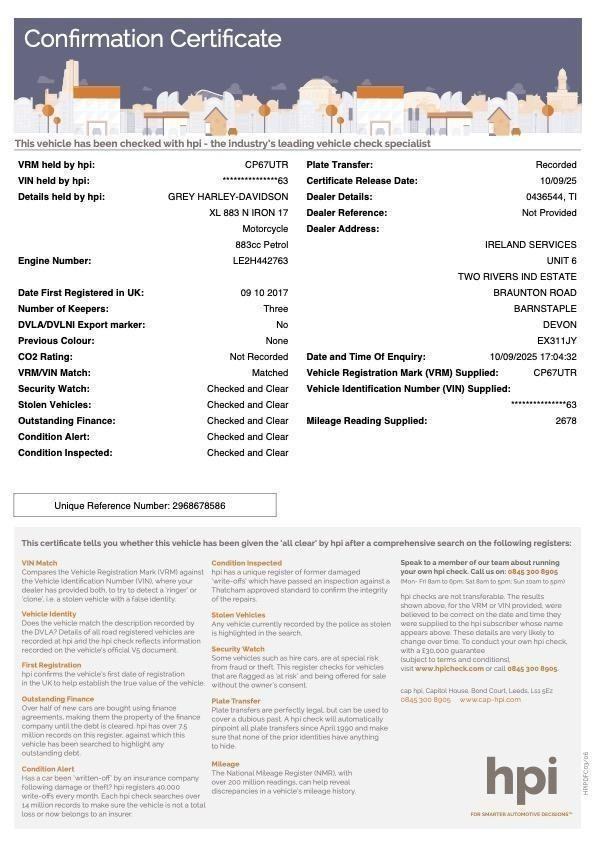 Posting for 3+ years2017 67-PLATE HARLEY-DAVIDSON SPORTSTER IRON 883 ** JUST 2,678 MILES * EXTRAS **