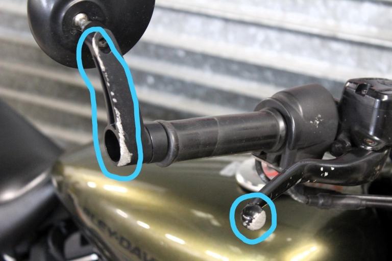 BAD POINTS/DAMAGE: There some scratching the mounts for the bar end mirrors and some scratching to the exhaust (circled in lihgt blue). The silencer is a bit weathered although I think this looks good against the green bike. I cannot find any other damage on this bike. Please study the pics as this description is just a guide!