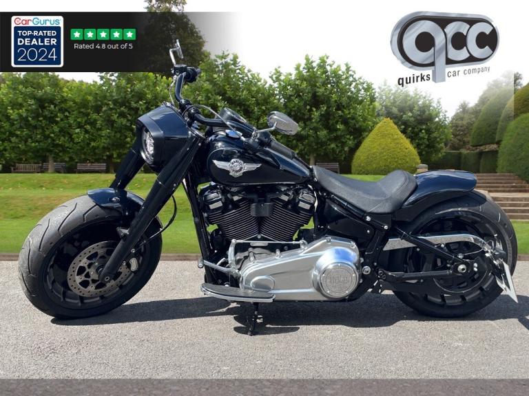 THIS DEMO + 1 OWNER HARLEY-DAVIDSON SOFTAIL 1868 FLFBS FAT BOY 114 FINISHED IN VIVID BLACK BENEFITS FROM THE FOLLOWING SPECIFICATION, SCREAMIN EAGLE FILTER, MANUAL ADJUSTABLE SUSPENSION, QUIRKS CAR COMPANY ARE VERY PROUD WINNERS OF RUNNER UP FOR AUTOTRADER RETAILER OF THE YEAR 2021, WINNERS OF AUTOTRADER HIGHLY RATED FOR OUR CUSTOMER SERVICE 2021/20, AND WINNERS OF CAR GURUS TOP RATED DEALER 2021/20/19. WE USE THIRD PARTY SOURCES TO OBTAIN STANDARD AND OPTIONAL FITTED FEATURES AND SPECIFICATIONS. WE CANNOT BE HELD LIABLE FOR ITS ACCURACY SO PLEASE VERIFY THESE DETAILS WHEN VIEWING THE VEHICLE PRIOR TO PURCHASE. YOU MUST PHYSICALLY CHECK THE SPECIFICATION OF THE VEHICLE ON SITE PRIOR TO PURCHASE.