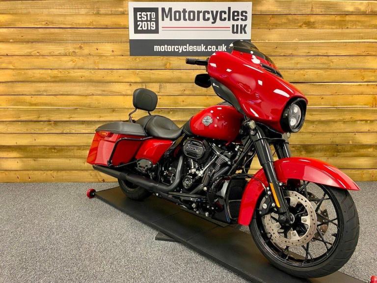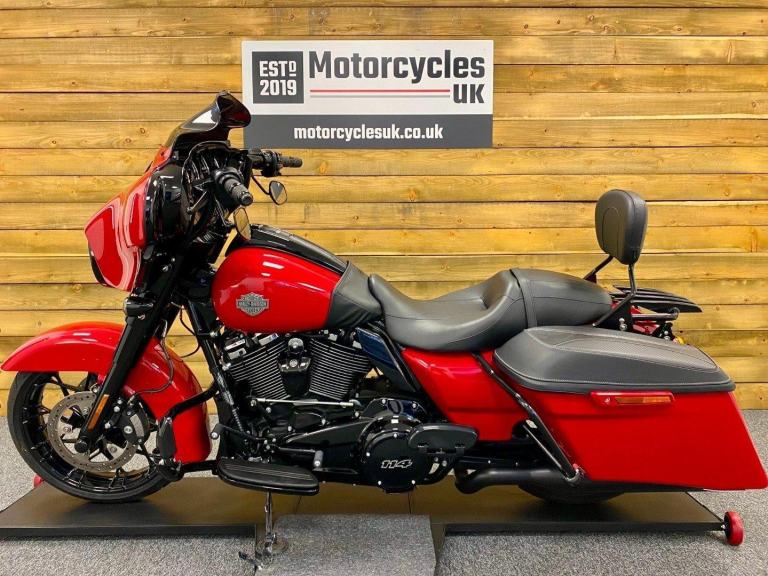 Harley-Davidson FLHXS Street Glide Special 114 (1868cc), 2022, 72 Plate, Only 1,072 Miles and 1 Owner from New with Full service history, serviced July 25 at 945 miles. This is a truly Immaculate example of the legendary Street Glide Special that offers classic Harley touring styling with modern tech and blacked-out attitude. It's perfect for crossing continents in all day rider & pillion comfort or cruising the country roads on a weekend. This beautiful machine has a massive specification including; S and amp;S GNX Slip-on pipes, Screamin' Eagle air cleaner, Milwaukee-Eight® 114 V-Twin (1868cc) motors delivering 119 lb-ft torque, ABS Brakes, Infotainment: Colour coded panniers with Saddleman covers, Boom Box GTS with touchscreen, navigation, Bluetooth, voice recognition and audio, H-D Heated grips, LA Choppers Twin peaks touring bars, Daymaker LED headlamp, LED Batwing fairing light, Tinted windshield, Flush fit filler cap, Tank bra, Engine-bars & Highway pegs, Front axle nut covers, Rear protection bars, Rear foot-boards, Detachable sissy-bar & Rack, Thousands spent! Call today for more details of this high, spec, low mileage, great value Tourer!