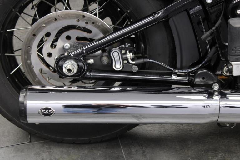 This Street Bob comes to us fitted with an S&S slip on exhaust in chrome, forward foot control kit, badlander style dual seat, sissy bar with passenger backrest pad, Hollywood style handlebars and a front fairing with smoked windshield. The bike has had 2 previous owners, has covered just 3,312 miles and is in fantastic condition.