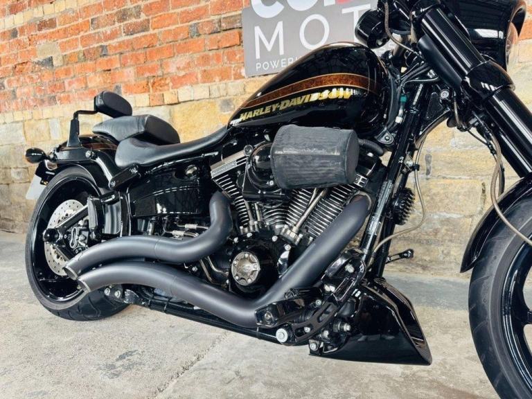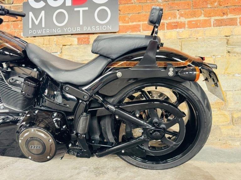 The CVOtrade; Pro Street Breakoutreg; is all about dark style and massive torque. It features cutting-edge finishes with show-stopping paint and styling details fender to fender. The Aggressor wheel mounts to a 240mm rear tyre. The forward controls, new race-inspired seat and handlebar create a riding position perfect for prowling. And a Screamin#039; Eaglereg; Twin Cam 110Btrade; engine with heavy breather intake, inverted forks and new dual-disc front brakes mean the performance matches the power of its style. It#039;s our top-of-the-line take on long, dark American muscle. This bike has to be seen to be appreciated, its simply breathtaking in this colour scheme!