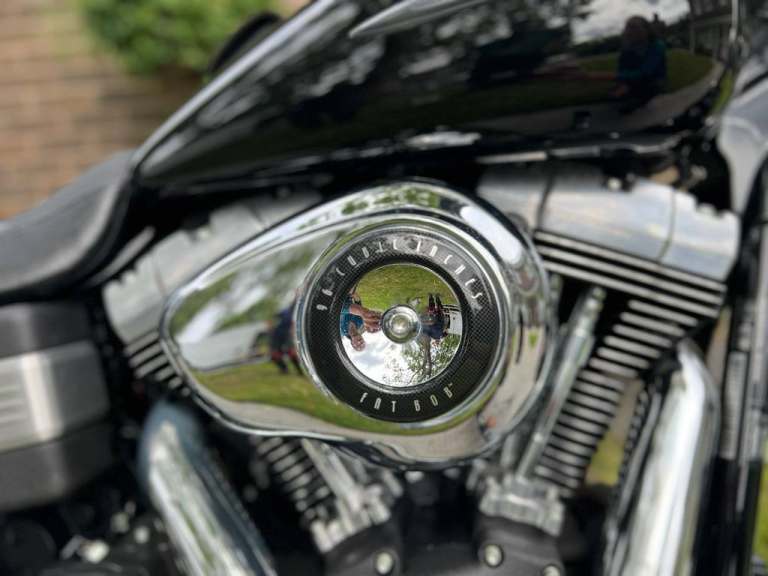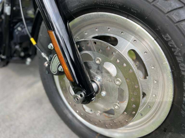 This Fat Bob features the distinctive twin headlights, wide tyres, upright riding position, forward controls, and strong dual-disc front brakes. A real head-turner with plenty of presence on the road.