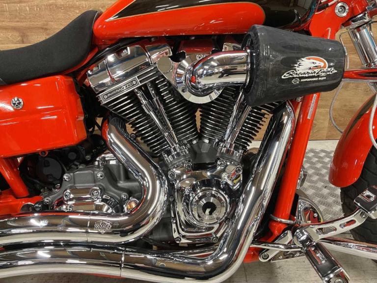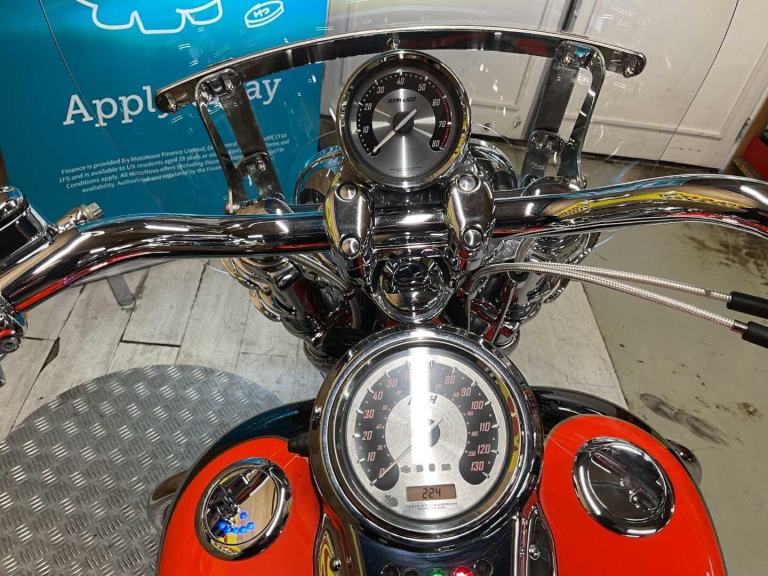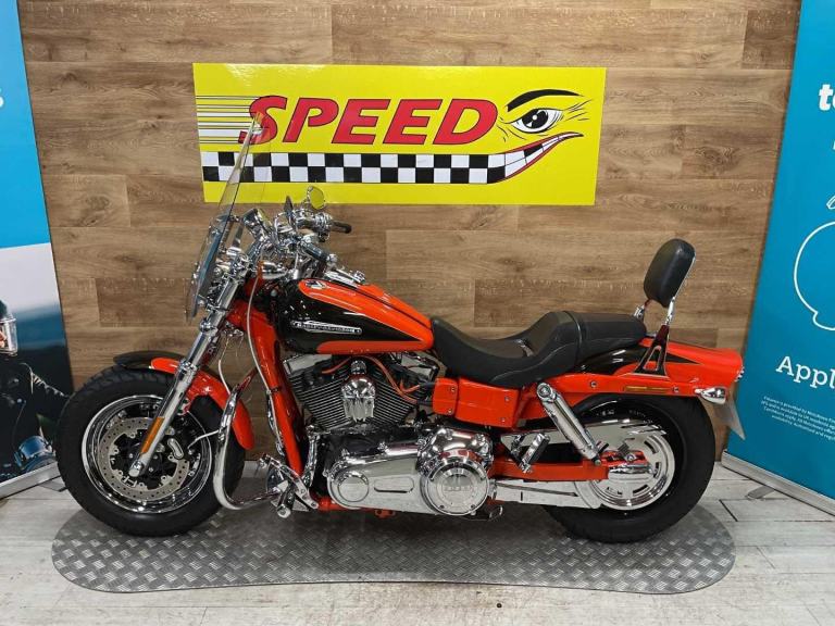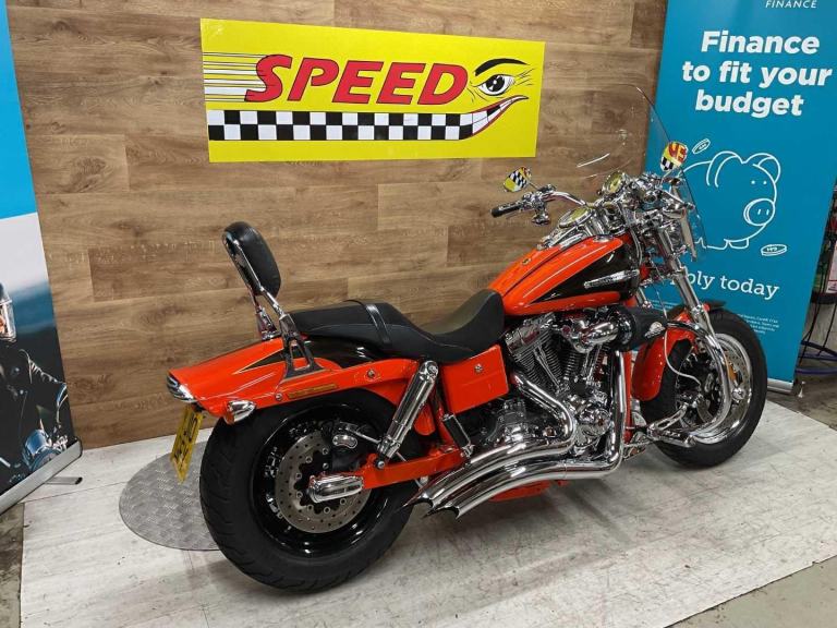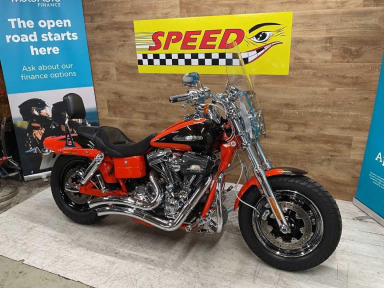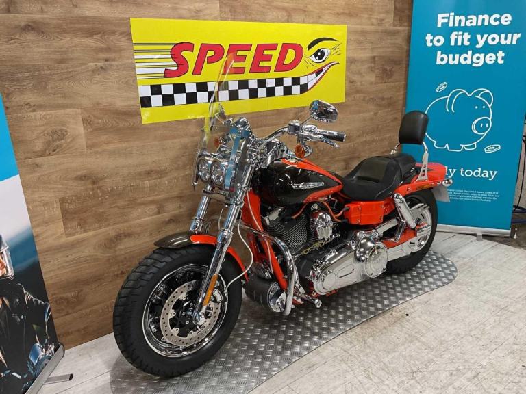 2010 Harley Davidson Fat Bob CVO SE, only 23983 miles and 7 owners from new, hand and service book with 10 stamps, te bike is in fantastic condition and looks amazing in its custom CVO paint work, it comes fitted with a slash cut Vance & Hines exhaust, Screamin Eagle air filter, extra chrome work, back rest, engine bars and screen. The Harley Davidson CVO Fat Bob stands out for its aggressive styling, big 110 cubic inch engine, premium finishes, and surprisingly nimble handling for its size, offering a powerful, custom level experience with lots of chrome and unique paint. Key features include the powerful Twin Cam 110 engine, heavy breather intake, dual headlights, unique wheels, and upgraded suspension, making it a standout, statement making bike for those wanting top tier customization without building one themselves. Retail bikes: Competitive finance & great part exchange allowances. Call our team for an easy, no obligation quote. All our retail bikes come with a full PDI, valet & 3 months total cover warranty (additional £75). Credit & debits cards accepted. Delivery in mainland UK from only £125 + VAT. Compulsory admin fee of £100 for 3rd party finance.