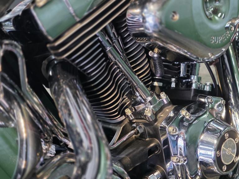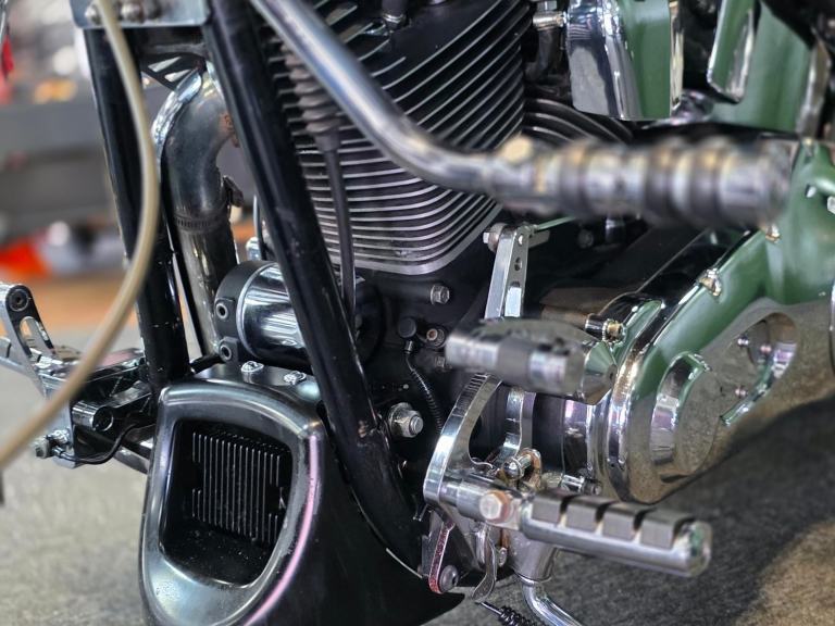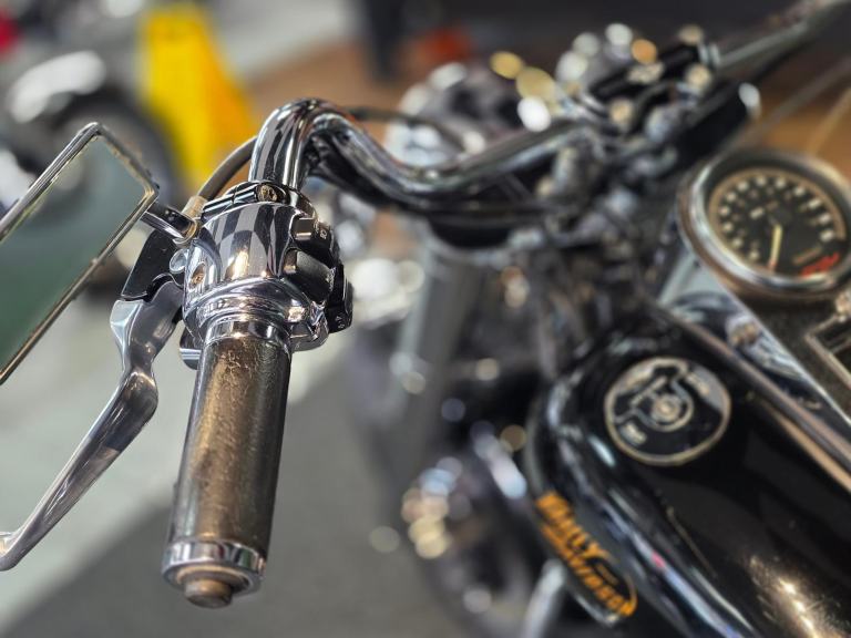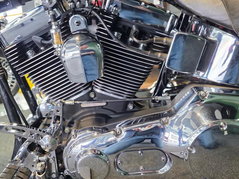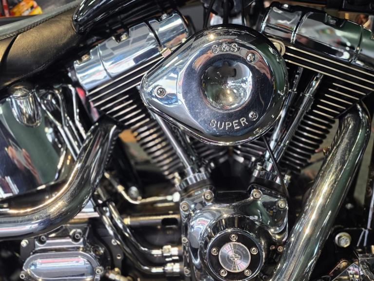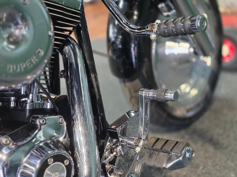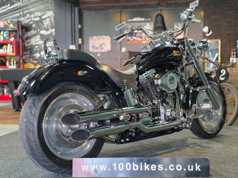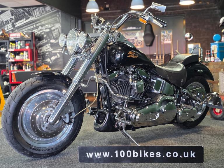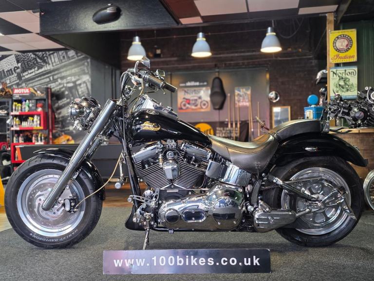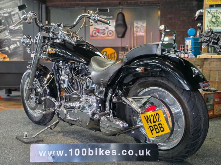 Harley-Davidson FLSTF Fat Boy 1450cc in Black with 50,000 Miles. Only 2 Owners from New, Last since 2007. This bike has 3 Degrees of Additional Fork Rake, S & S Direct Drive Cams, S & S Carb Kit, Performance Coil & Ignition, Heavy Clutch Spring, Eze Clutch, Screamin Eagle Exhausts, Chrome Forward Control's, Chrome Switch Gear & Master Cylinder Cover, Belly Pan, Custom Grips, Braided Hoses, Chrome Head Bolt Kit, Custom Mirrors, Stainless Steel Belt Guard, Chrome Swing Arm, Custom Tank & more... Fastidiously Owned & Serviced, Maintained £8,495