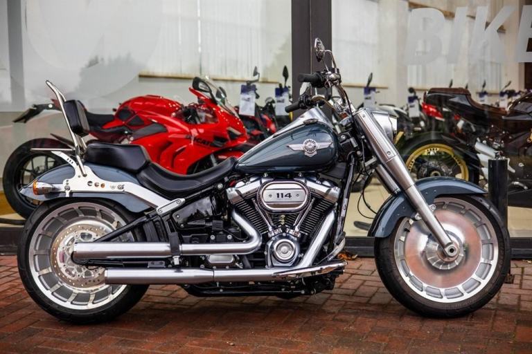 This fat boy is stunning and only 3684 miles, it comes in a very rare metallic grey with some lovely little extras including side mount plate, rear sissy bar with luggage rack, foot boards and this bike is the 114 with amazing sounding Vance & Hines stainless pipes, it comes with original keyless key fob and books and invoiced history also, It will be leaving us with a fresh service, 12 months MOT and 3 months warranty also., 3 months warranty, 12 months MOT, Last serviced at 3,684 miles, Full service history, Excellent bodywork, Tyre condition Excellent, 2 seats, Metallic Grey, 2 owners, 2 keys, Electric start, LED Indicators, Low Seat height, Luggage Rack, Stainless Exhaust, Optimum Bikes Offer Flexible Finance Packages, P/X Welcome and Nationwide Delivery.