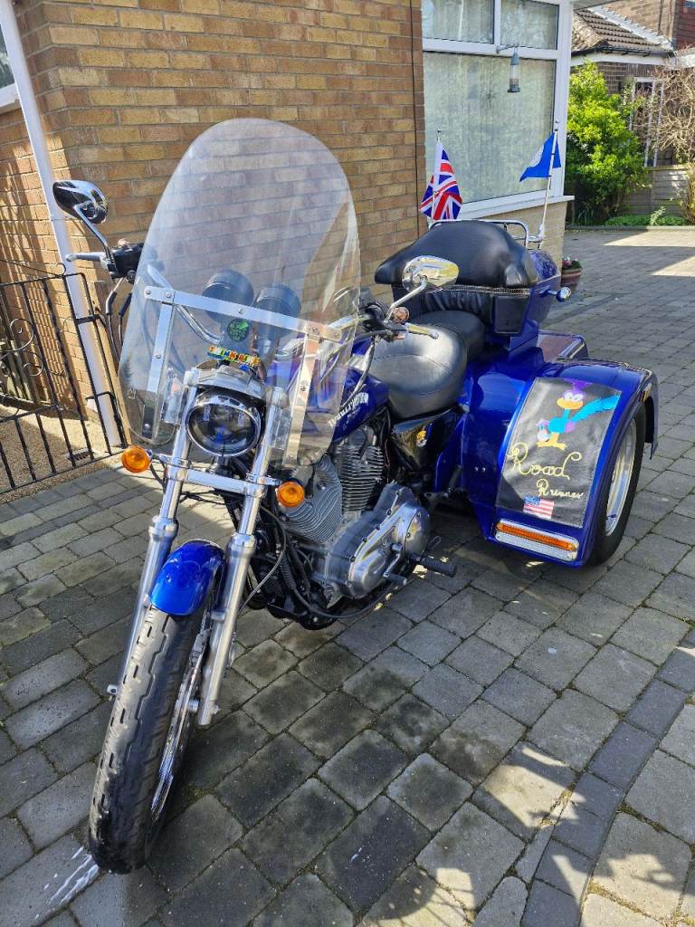 REDUCED harley davidson 883xl trike. Fule injection. Electric start .air suspension. Electric reverse and speed box .MOT very good condition. Gets a tension where ever you go .