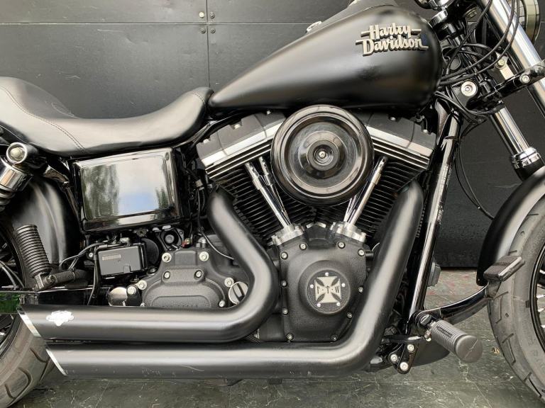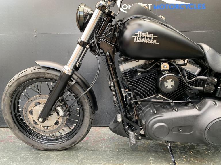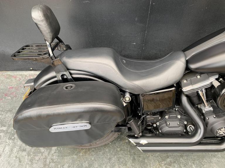 Here we have for sale a Harley-Davidson Street Bob FXDB 1584 in overall very nice condition. This bike comes fitted with Vance&Hines pipes, back rest, pannier bags and a Harley-Davidson flush mount fuel cap and gauge kit. Both tyres are in good condition. This bike will come with a 12 month MOT and it has been serviced at the current mileage, accompanied by a 3 month part and labour warranty. We have the V5, Owner's manual, 2 fobs and maintenace receipts for this bike.