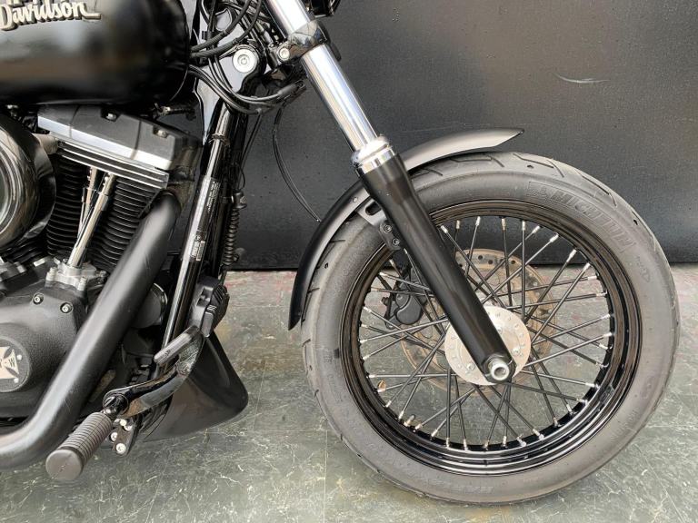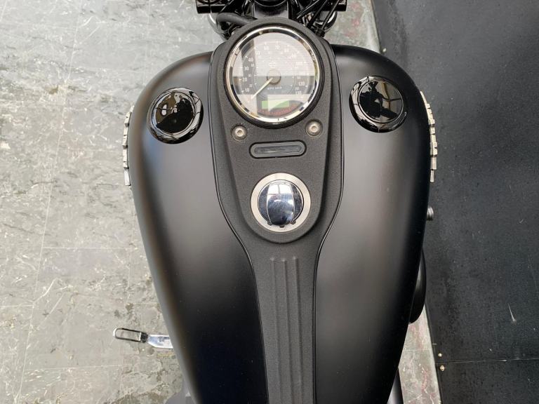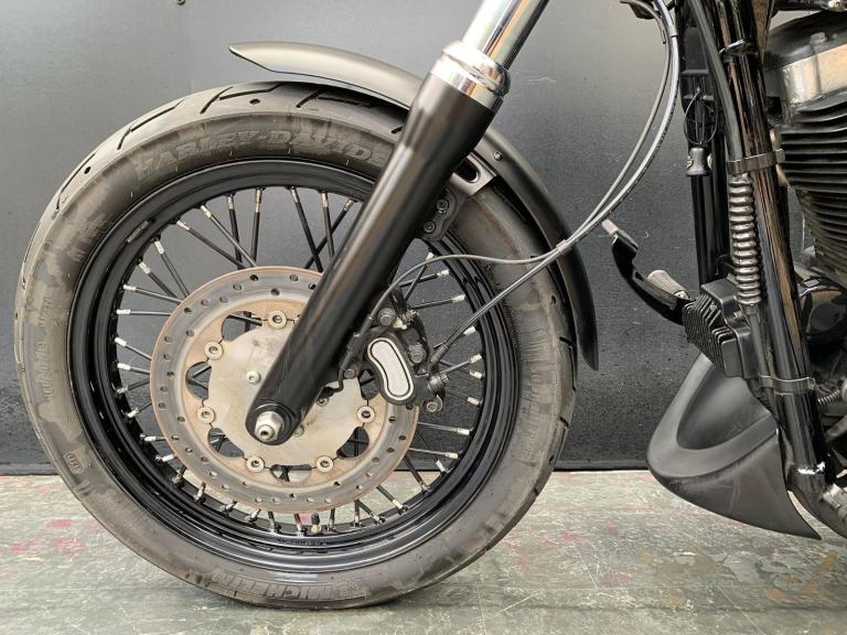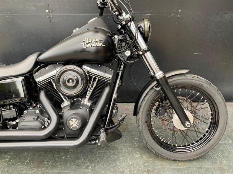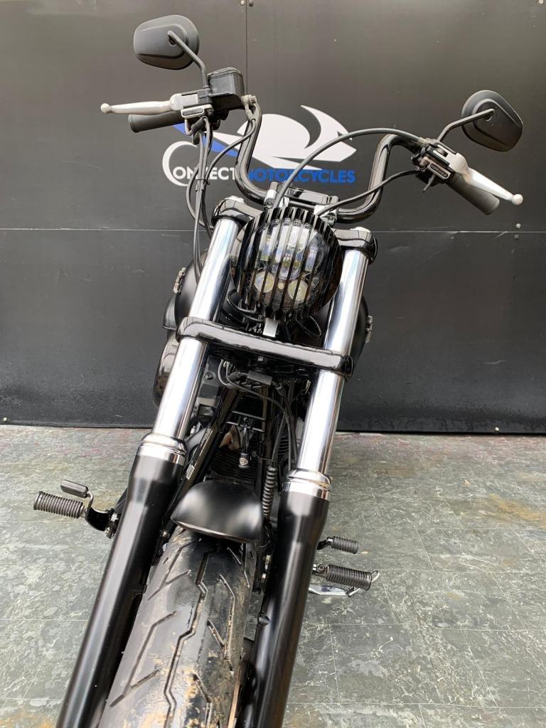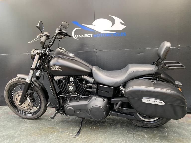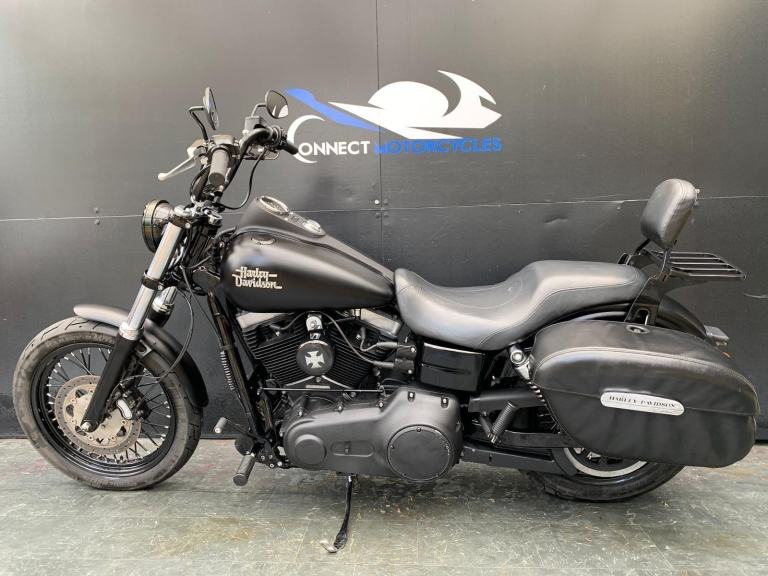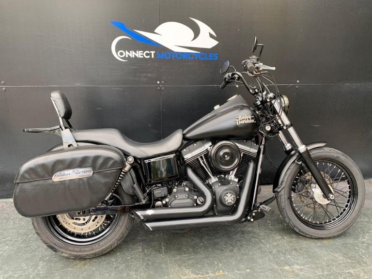 Here we have for sale a Harley-Davidson Street Bob FXDB 1584 in overall very nice condition. This bike comes fitted with Vance&Hines pipes, back rest, pannier bags and a Harley-Davidson flush mount fuel cap and gauge kit. Both tyres are in good condition. This bike will come with a 12 month MOT and it has been serviced at the current mileage, accompanied by a 3 month part and labour warranty. We have the V5, Owner's manual, 2 fobs and maintenace receipts for this bike.