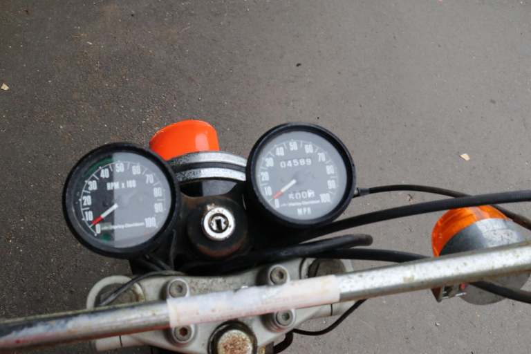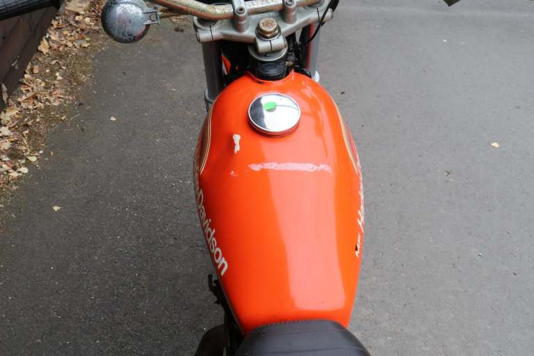 If you are reading this advert, the motorcycle is STILL for sale. Fresh in from the USA, a 1975 Harley-Davidson SX175 H5. all original US barn find. Mileage of 589 probably isn't correct, but looking at the original tyres, it's not done much more. Engine turns over with compression, but attempt has been made to start it. Be quick on this one, H-D SX175s are getting hard to find, so it won't be here long at this price.