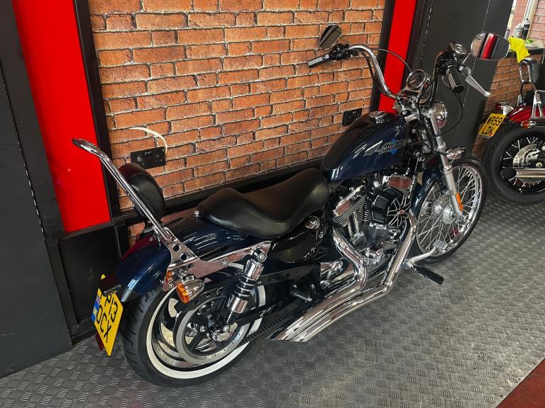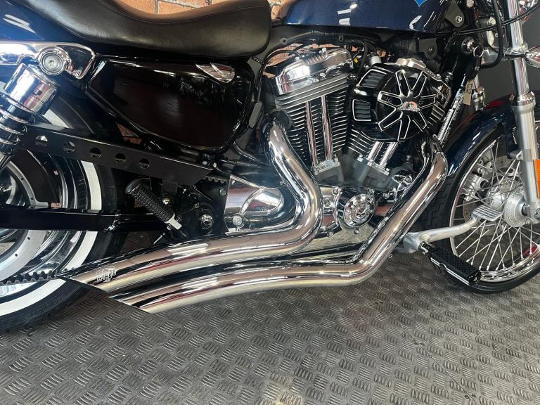 Here we have a lovely example of a Harley-Davidson XL 1200 V SEVENTY TWO! These bikes are becoming increasingly rare to find in nice condition especially with all the extras on. that this example has, The solid chrome rear wheel is a genuine Harley part that cost's upwards of £2000! The owner has spent a fortune on extras like Chrome progressive rear shocks, Removable sissy bar/ back rest, Vance&Hines chrome swepped pipes, Screaming eagle big air intake, Genuine Harley aftermarket grips, Various genuine Harley Davidson skull engine covers meaning this bike is great for someone to just jump on and enjoy for many miles to come! This bike definitely wont be around long so don't miss out!