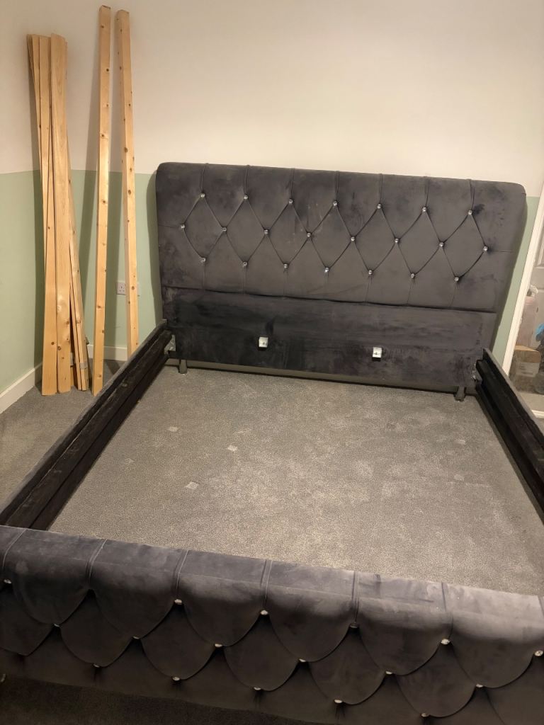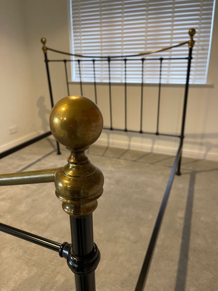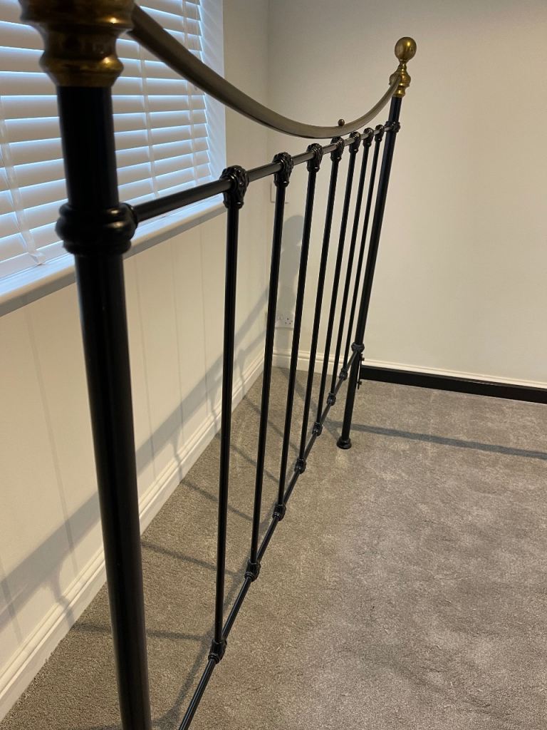 Lovely kingsize black metal & antique brass bed surround to include headboard, footboard and connecting side bars. Easy to put together with 8no Allen bolts. Sturdy frame in good condition.