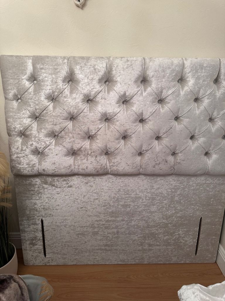 Double bed floor standing headboard, beautiful crushed velvet its like a champagne/silver colour