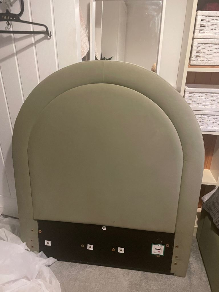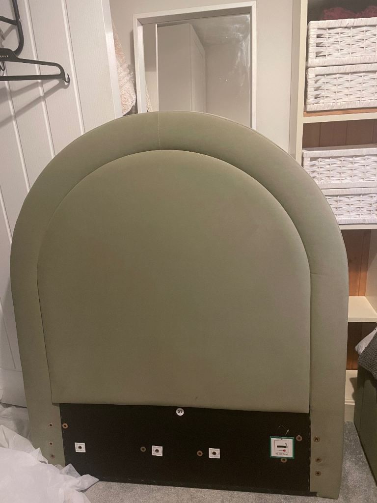This is a new sage green velvet headboard I was sent 2 with my new bed so don’t need never fitted or used