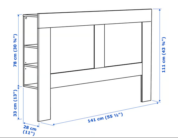 IKEA BRIMNES Headboard with storage compartment, white, for Standard Double Bed