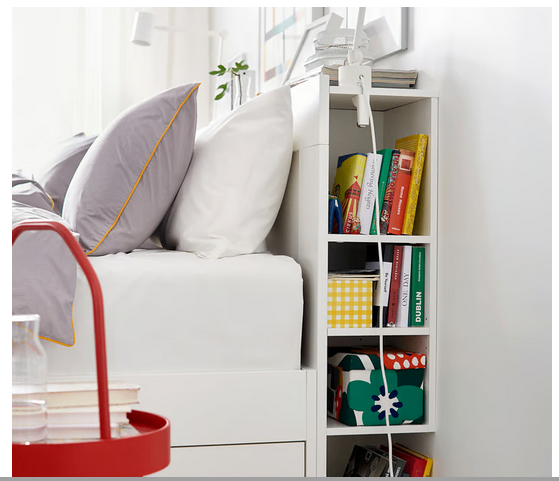 "You don’t need a bedside table when you have storage in the headboard. This saves space and makes it easier to access boxes or drawers under the bed; and it’s easier to vacuum too.