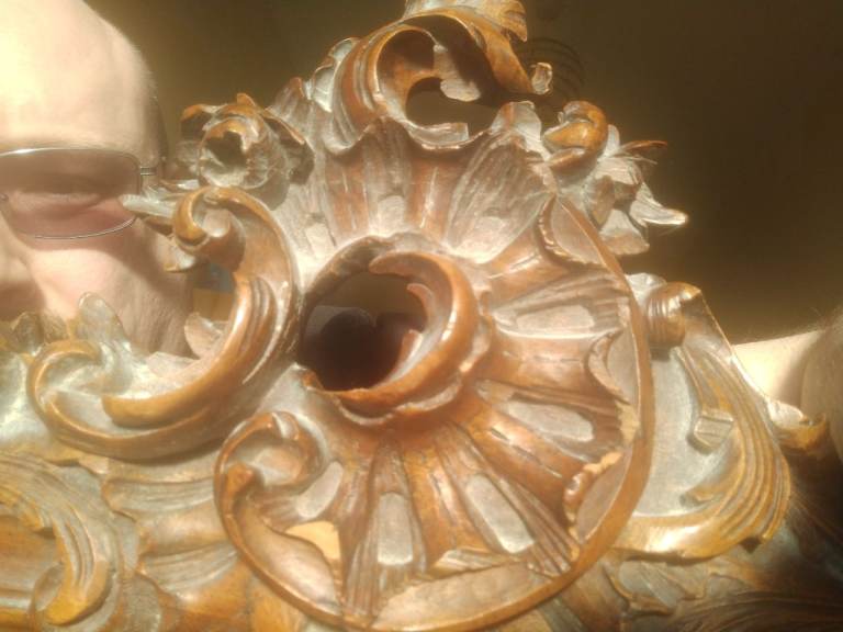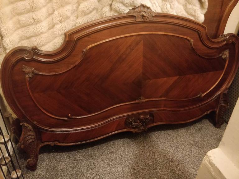 Posting for under a monthKing size Rococo-style bed frame. Some cosmetic damage. Ideal shabby chic project. Collection Only.