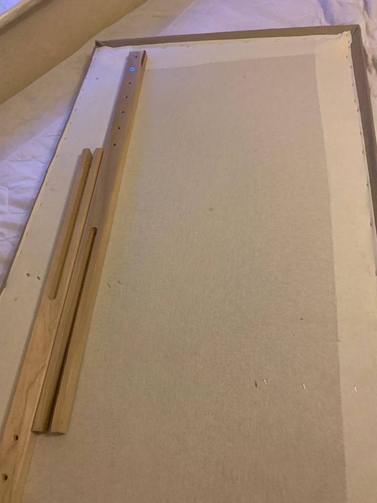 Beige/ Stone coloured padded headboard. Excellent condition . Easily installed with back legs. Only selling due to moving.