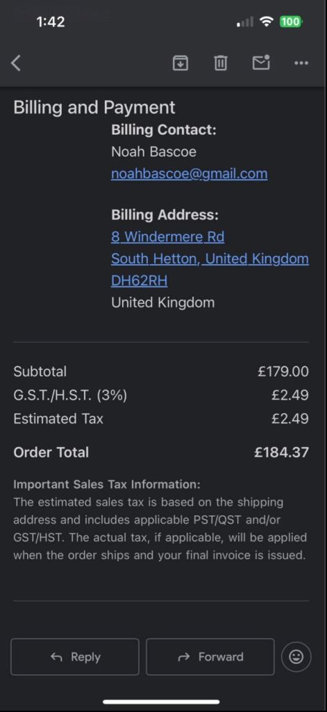 ✅ | Receipt - Digital which includes my name and address for proof of ownership.