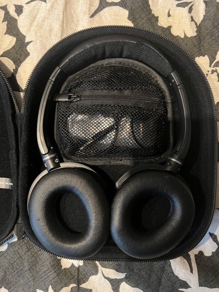 Two sets of headphones, both unused and only opened once to inspect them; both are wired so no Bluetooth connectivity. Great sound quality, solidly made, and not a scratch on either pair; ready to be put to work straight out of the box.