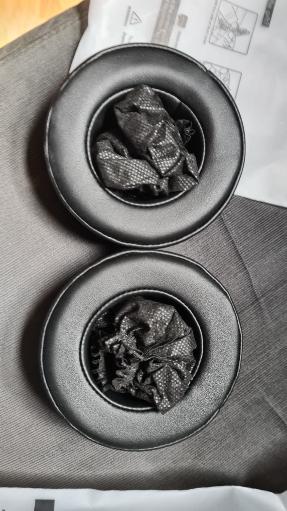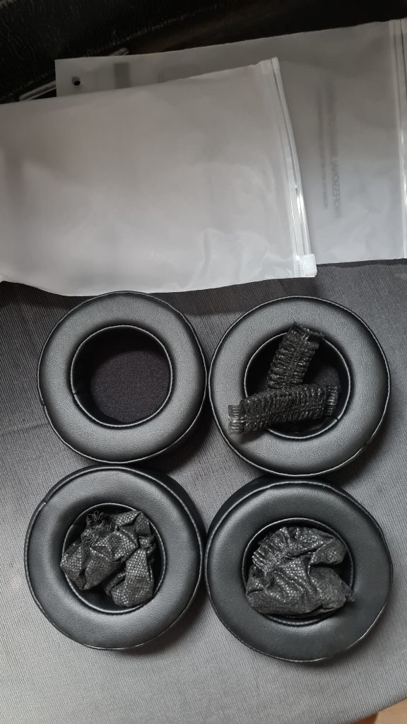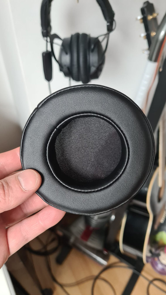 Quality pads and pleather, they are slightly thicker than the original pads, so there's more room for your ears inside the cups, but they're also very soft and quite springy.