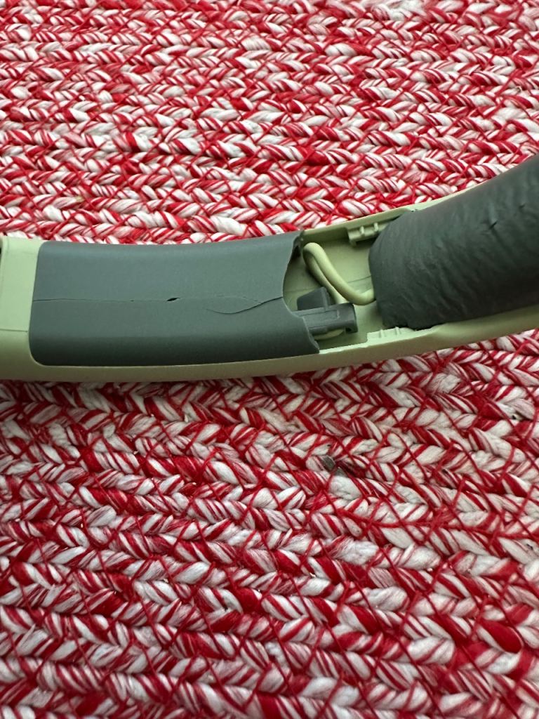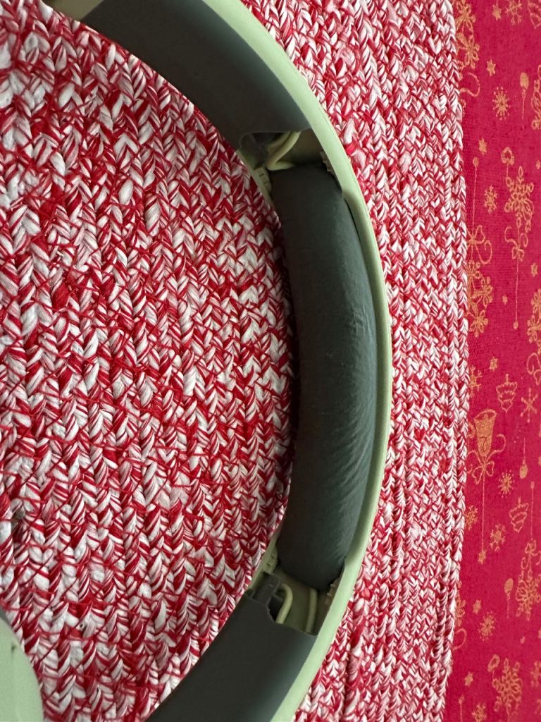 Traces of wear, pinched rubber head and cracks inside can be seen in the picture but do not affect their functioning.The earpads are still ok.