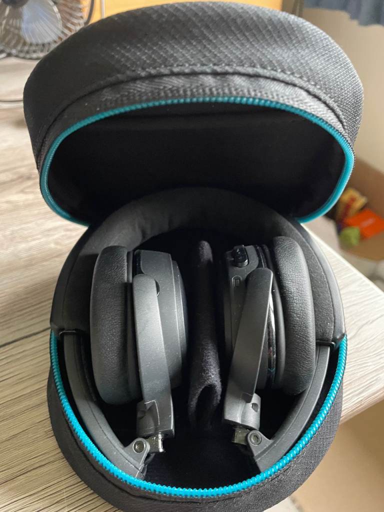 Amazing ANC, easy to store away, could clip on bagpack or waste belt. Got my self ears buds and haven't given this enough attention, clean and barely worn.