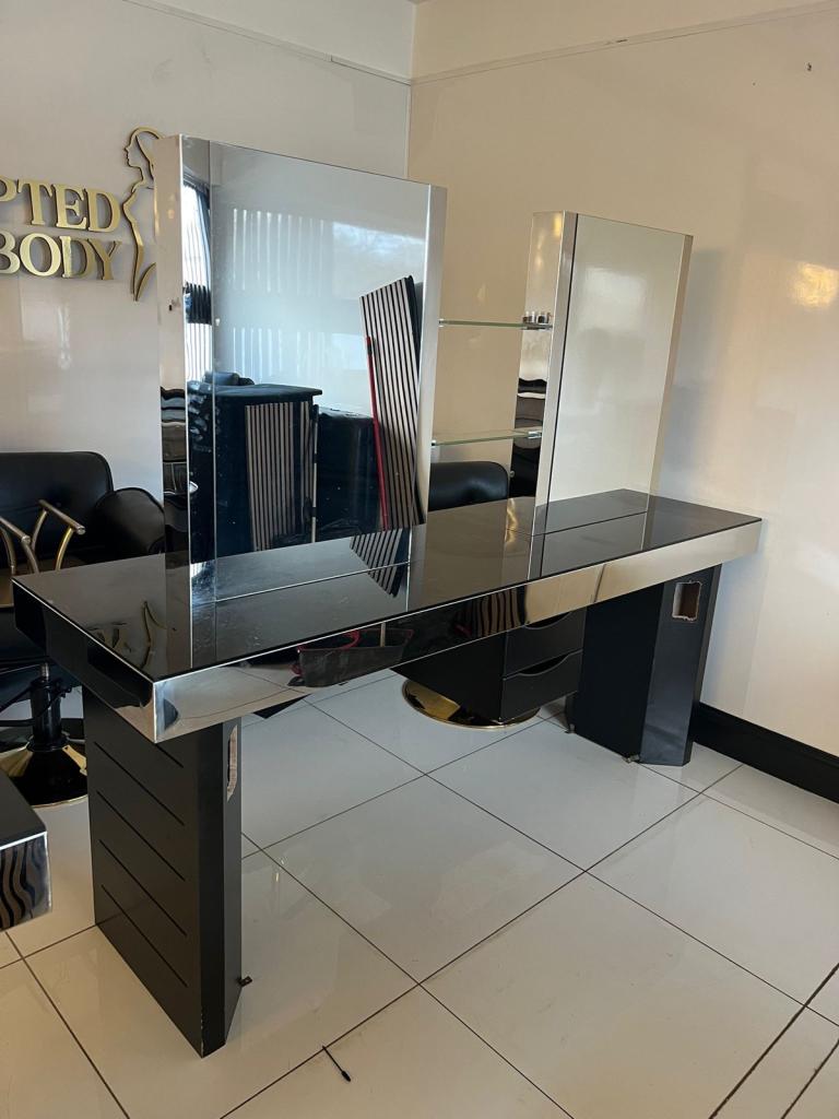 Hairdessing chairs. X4. £200. Hairdressing/ make up glass vanity table (seats 4) £200. Desk. £50. All clean perfect condition. Listing for my daughter, pick up Rutherglen/spittal area. If interested I will forward her contact details.