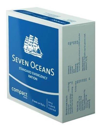 • Seven Oceans Survival Food Pack, 500g, 9 bars, 10,300kJ or 2500 kcal (x 2).