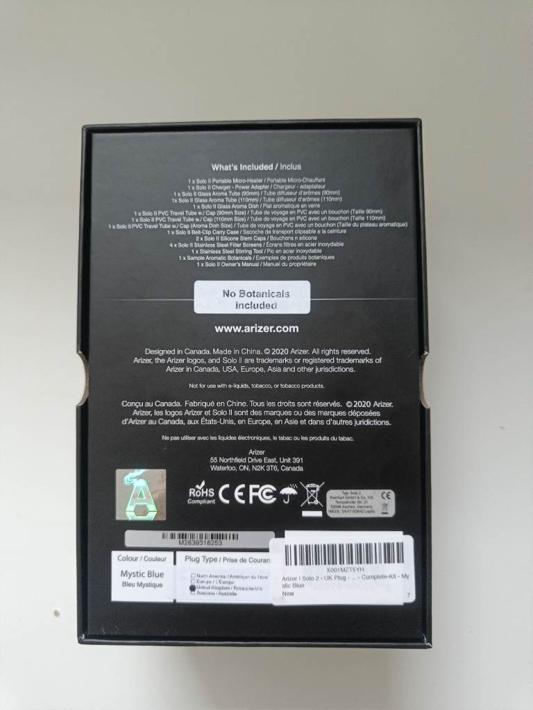 Posting for 1+ monthsNEW Arizer Solo 2 Mystic Blue - Dry Herb Vaporiser PLUS 5 Extra Glass Extensions