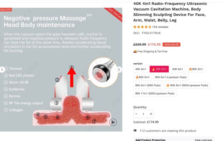 40K 4in1 Radio-Frequency Ultrasonic Vacuum Cavitation Machine, Body Slimming Sculpting Device For Face, Arm, Waist, Belly, Leg