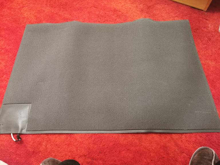 Barely used cordless alarmed mat which alerts carer to patient getting out of bed or wandering. Alarm sounds beside carer, not in patient room.