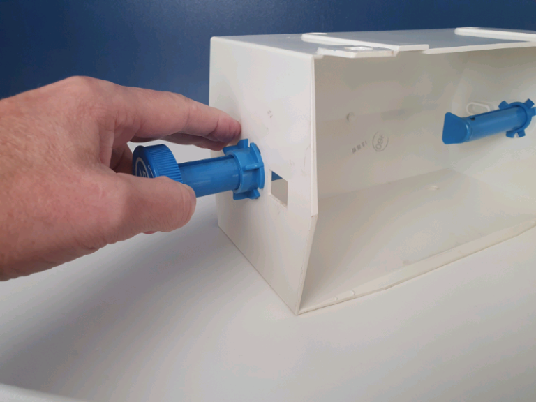 A used and in very good condition Kimberly-Clark WypAll Small Roll Wiper Dispenser28cm wide.