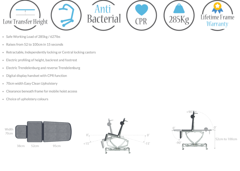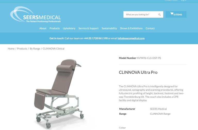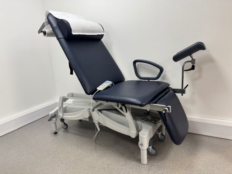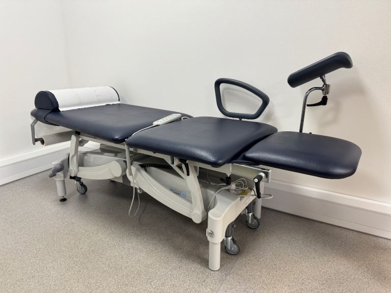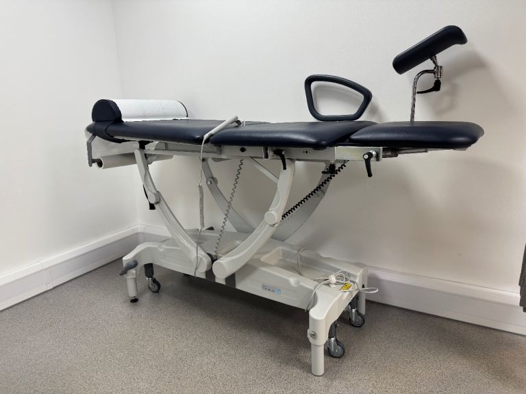 High-end CLINNOVA Ultra Pro Electric medical couch, manufactured by Seers Medical (UK).
