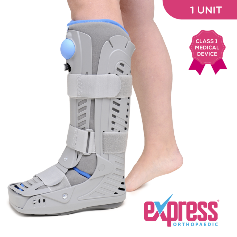 Ultra-lightweight full shell air walker boot incorporates a protective full shell plastic exterior with soft foam lining and inflatable air bladders for adjustable compression for swelling control. Ideal for patients suffering from sprains and stable fractures.