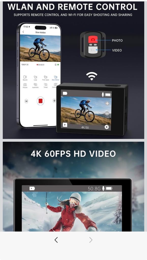 Action Camera 4K 60FPS, 40M Ultra HD Underwater Camera, 30MP EIS Anti-Shake WiFi Action Cam with Dual Touch Screen, 64GB Card, Remote Control, Waterproof Case and Mounting Accessories Kit