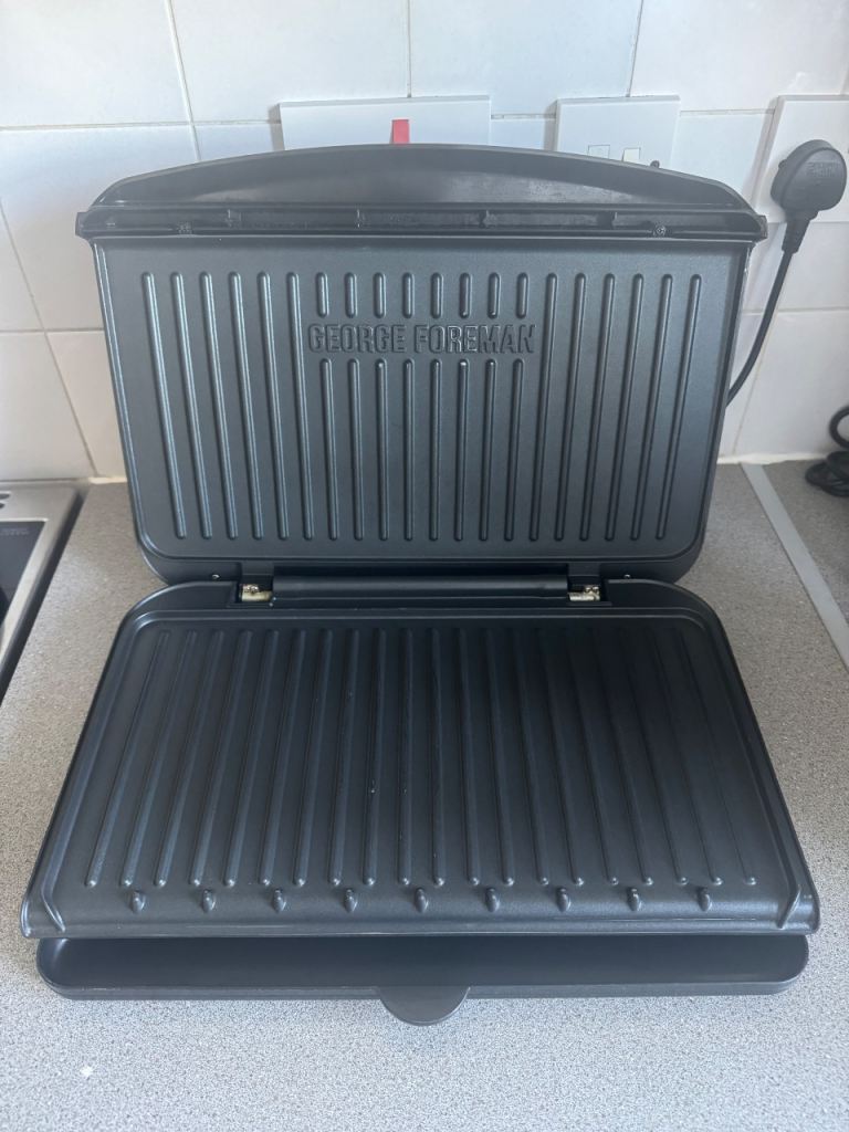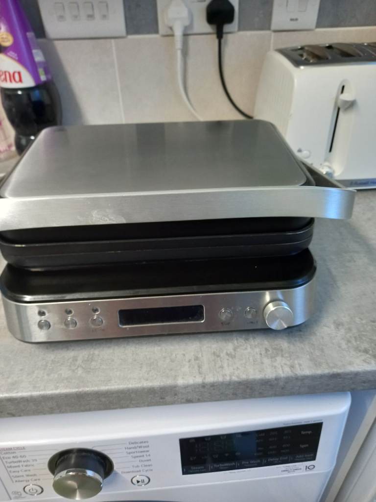[Non stick, Healthy, Griddle, Toastie, Hot plate, Panini, BBQ, Energy saving, Vertical storage, Easy clean, Drip tray, Ready to cook light] Black, 760W