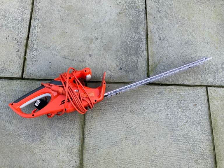 Flymo EasiCut hedge trimmer. Dual 50-centimetre (20-inch) blades. Centralised handle design for comfort and ease when in use. 8m (25-foot) cable. Perfect for medium sized gardens. Only used a few times. Comes with blade cover. B&Q (where I got it) sell them for £75. Selling because I have a high bush and have bought an extending trimmer (to save balancing on a wall). Asking price only, thanks.